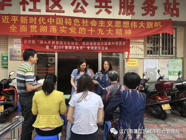 为全面深入贯彻党的十九大精神,以全新的姿态推进新时代爱国卫生运动。结合创文考察内容的相关要求,蓬江区4月份开展以“关注小环境,共享大健康”为主题的第30个“爱国卫生月”活动,进一步改善城乡环境卫生面貌,提高群众文明健康素质。
