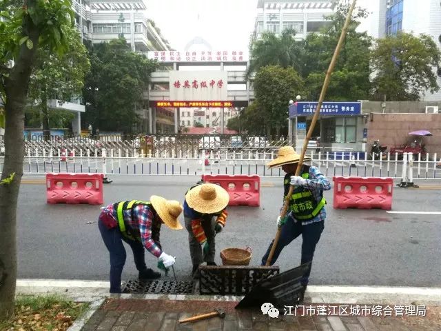 加强考点学校周边排水管道的检修和维护。逐一检查辖区九个水浸黑点的现状,并对江门市培英高级中学、第一职业高级中学考点周边下水道进行全面的清理疏通,确保排水通畅。