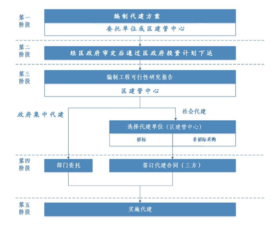 (一)政府集中代建模式:委托单位直接委托区建管中心组织项目建设;