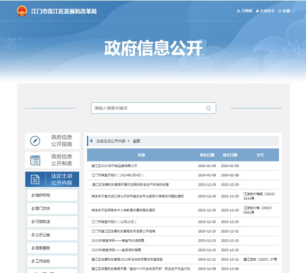 蓬江区发展和改革局2023年度政府信息公开工作年度报告