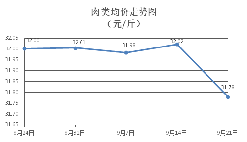 肉类商品价格小幅下降。所监测的8种肉类商品价格波动情况为2涨5跌1平,综合零售均价为每斤31.78元,环比下降0.76%。其中:排骨、精瘦肉、牛肉、带骨羊肉零售均价分别为每斤30.25元、18.99元、46.41元、40.08元,环比分别下降0.10%、下降0.11%、上涨0.11%、下降4.55%。