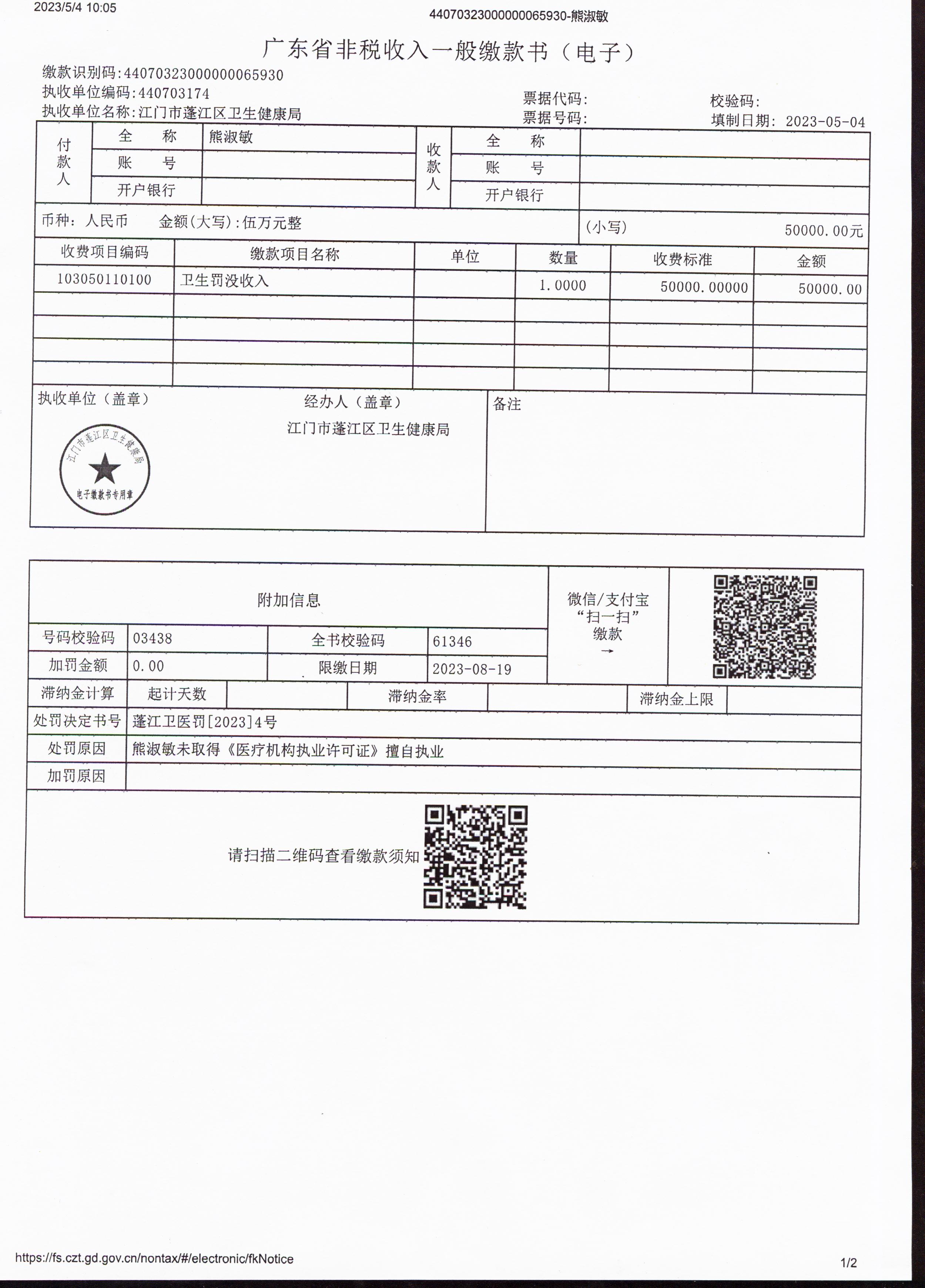 江门市蓬江区卫生健康局行政处罚决定书送达公告