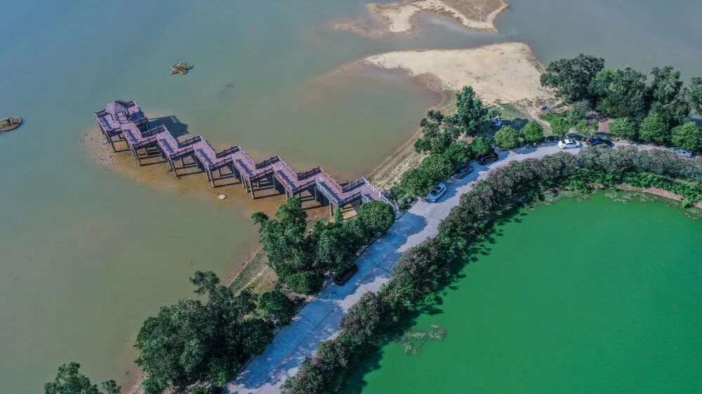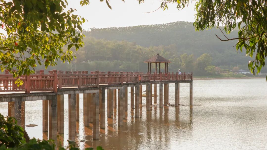 公园的环湖路长约2.8公里,沿路有大坝风光、观景平台、亲水栈道、凉亭、公园、休息点等。园内山水相拥,湖光山色,自然生态景观原始、优美。夕阳西下时刻,整个公园仿佛披上一层金黄色的滤镜,小清新中带着几分温柔浪漫,惹人陶醉。