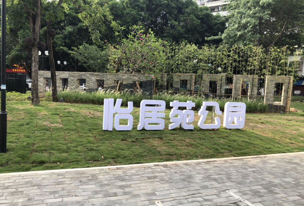 公园里竖起新的名称牌,草坪进行了复绿,为社区增添一抹亮色。