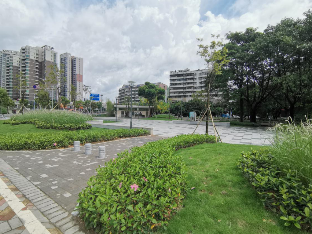 增添了不同品种的绿化植物,重新铺设地砖,公园如今焕然一新,给人不一样的景观感受。