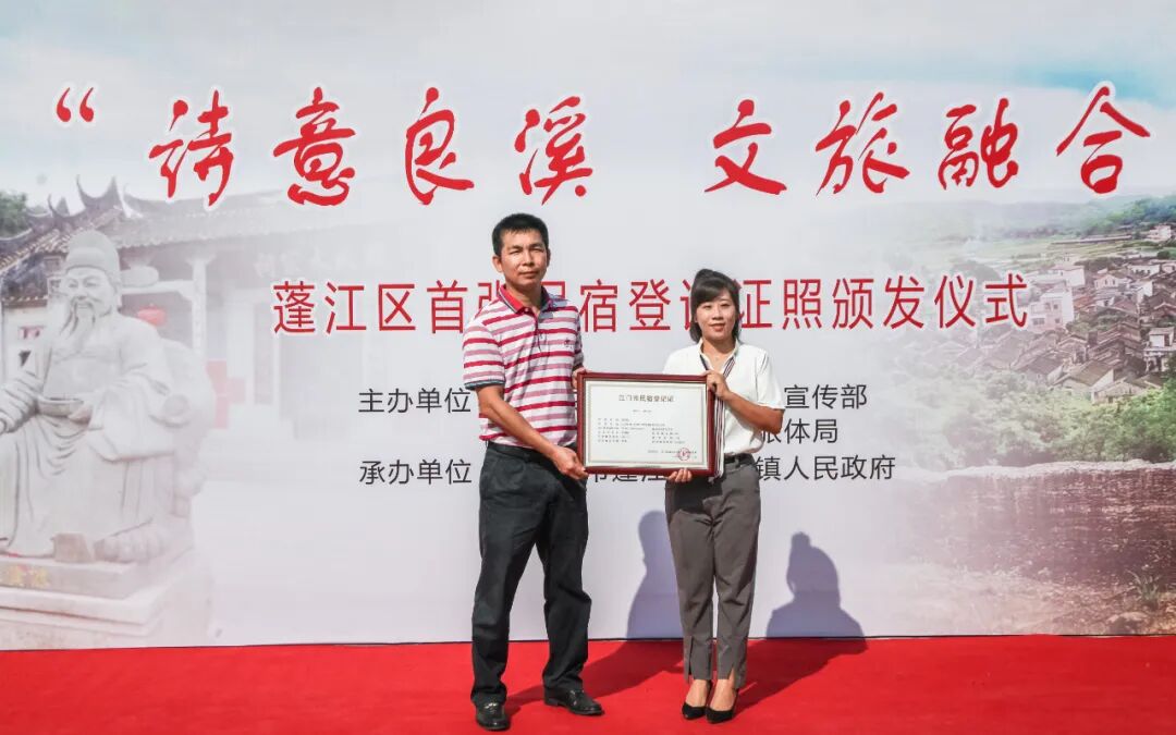 8月28日上午,“诗意良溪,文旅融合"蓬江区首张民宿登记证照颁发仪式在棠下镇良溪村榕树讲堂举行——