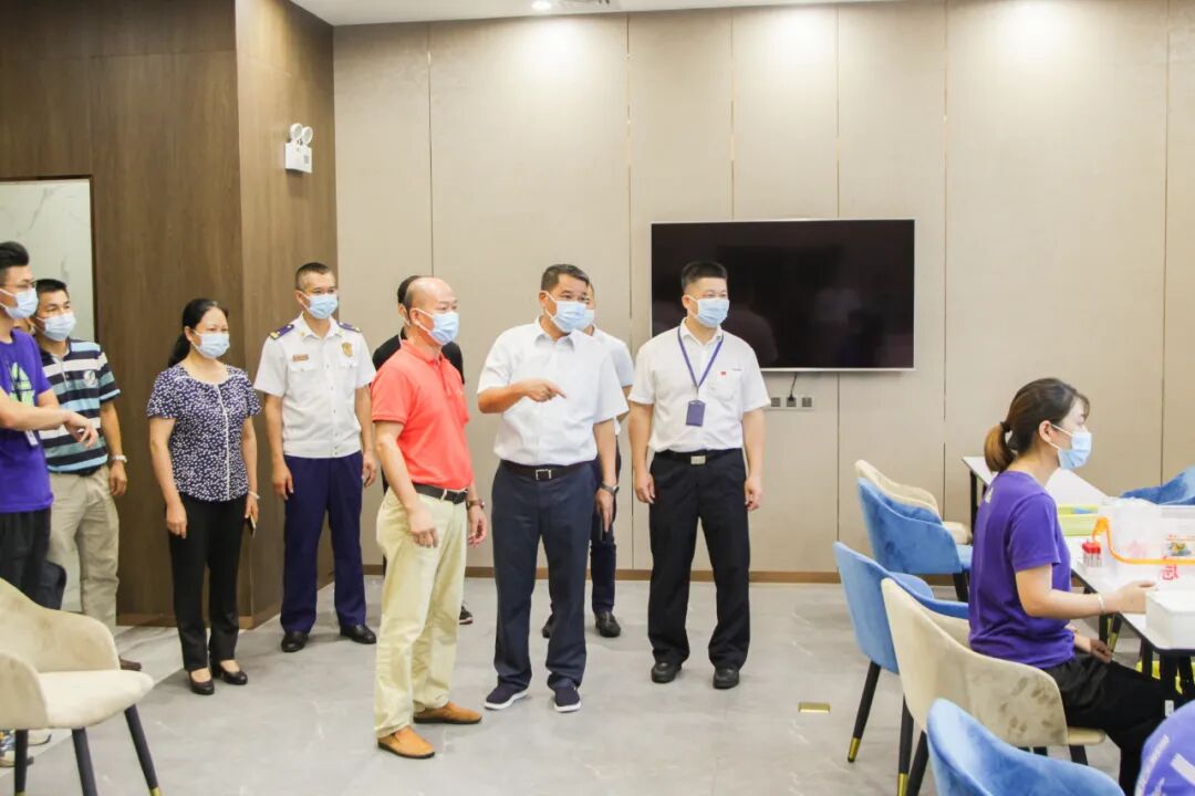 9月15、16日,蓬江区委书记、滨江新区党工委书记伍培进,江门市文广旅体局局长邝积康,蓬江区领导刘少龙、梁凤琼、罗军、黄达斌等先后到江门体育中心开展调研检查,了解比赛筹备情况以及参赛人员住宿、餐饮等场地建设和防疫措施准备情况。