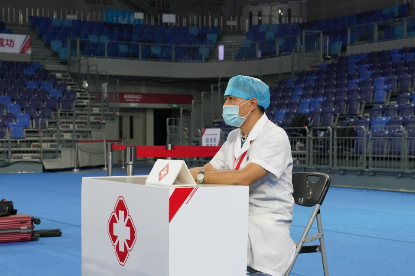 赛事期间,来自江门市第二人民医院的医护人员驻守比赛现场,为赛事突发的卫生健康情况时刻做好准备。
