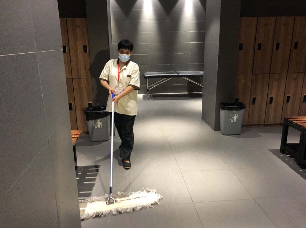 卫生清洁人员、细致入微,每天最早来,最晚离开,对场馆每个房间和角落进行细致清洁,确保赛区全方位的卫生消毒工作。