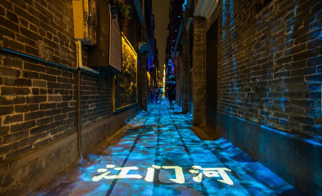 如今,走进启明里“时光巷子”可以看到,亮起蓝色的水纹灯光刻画出江门一直依傍的“江门河”形象;铜制的4幅雕塑画作呈现了江门这座城市的由来及变迁;散步时悠扬的音乐、低沉的江门故事讲解声,仿佛带领市民回到了“旧时”的江门。