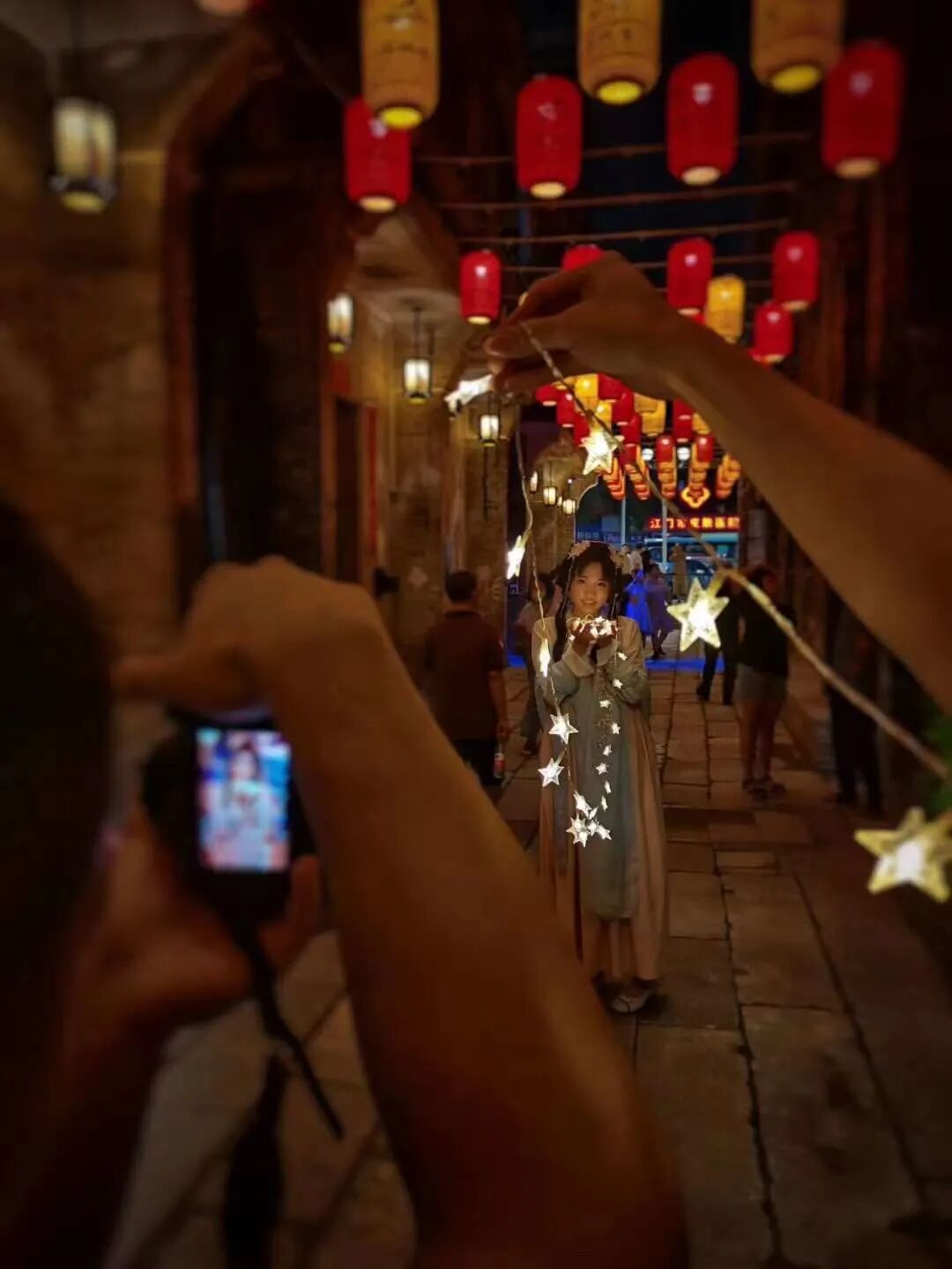此外,假期期间,国风中秋花灯会、启明创意集市、古风故里汉服巡演、万古筝鸣古韵表演等文创活动在启明里展开,汉服爱好者陈静在这里度过了难忘的假期。夜晚降临,陈静与朋友换上素色的传统汉服,带着油纸伞、古扇等,走进启明里拍照留念。她认为,夜晚的启明里更有魅力,“带有青砖、灰雕等风格的建筑及中秋传统节日的氛围,拍出的照片都很好看!”