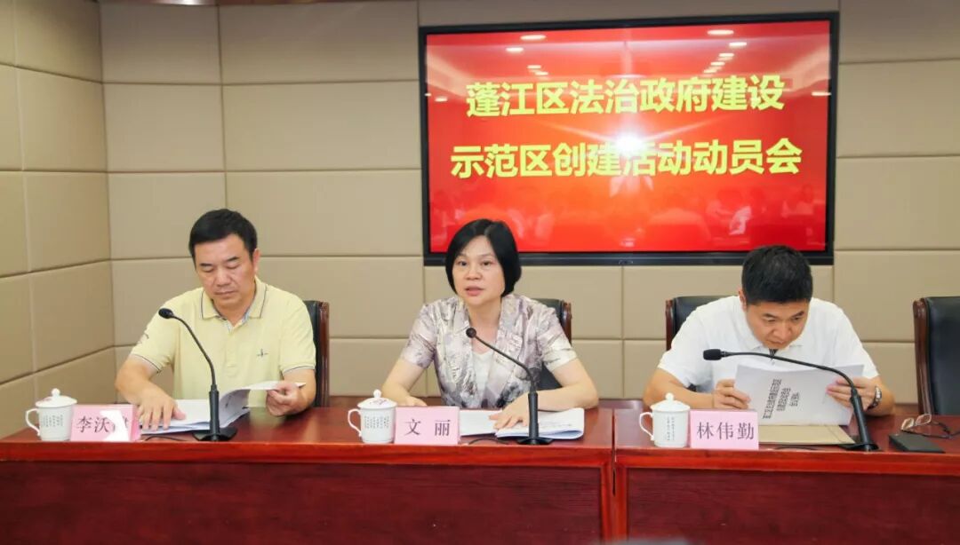 会议对全区法治政府建设示范区创建活动进行部署,要求严格按照《蓬江区申报广东省法治政府建设示范区创建活动的实施方案》,扎实做好示范创建工作。