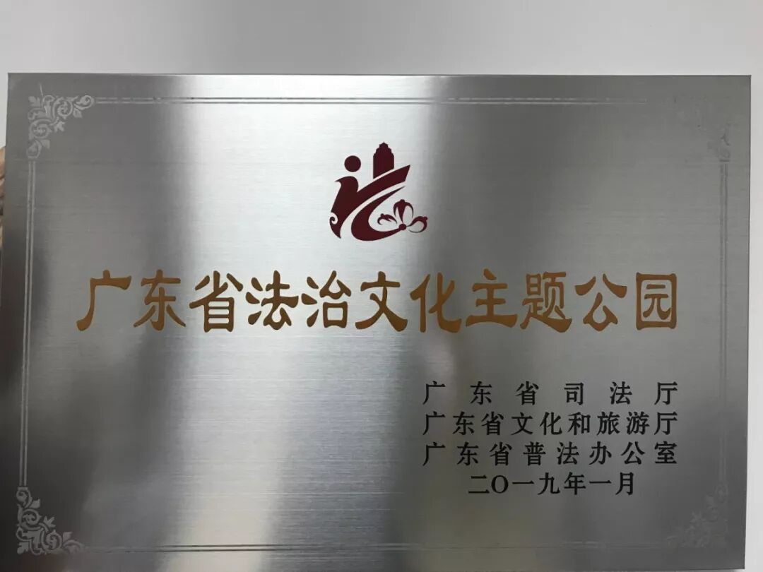 蓬江法治平安文化园获评2018年省级“法治文化主题公园”和全省“十佳法治文化主题公园”。