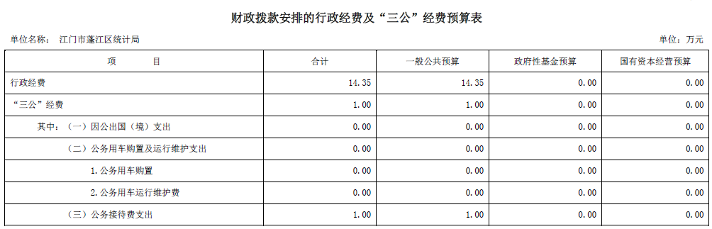 2021 年本部门财政拨款安排“三公”经费 1.00 万元,其中:因公出国(境)支出 0 万元;公务用车购置及运行维护支出 0 万元(公务用车购置费 0 万元,公务用车运行维护费 0 万元);公务接待费 1.00 万元 。