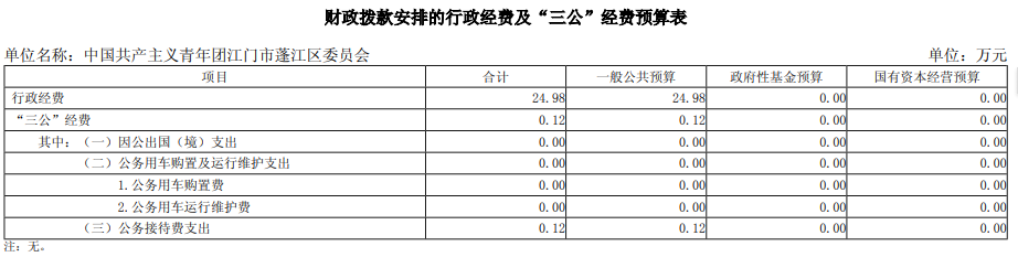 2025年中国共产主义青年团江门市蓬江区委员部门预算“三公”经费公开