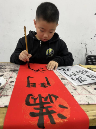 从一年级学习软笔书法后,我家的春联都是我包揽了,曾奶奶家、奶奶家和自己家的都是我写的,可有成就感了!